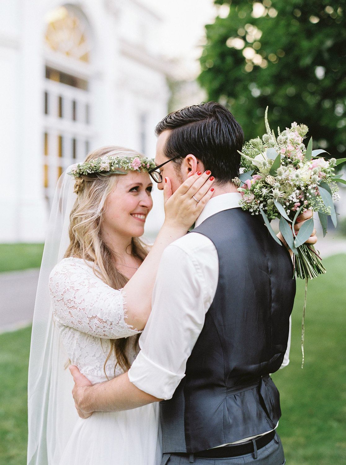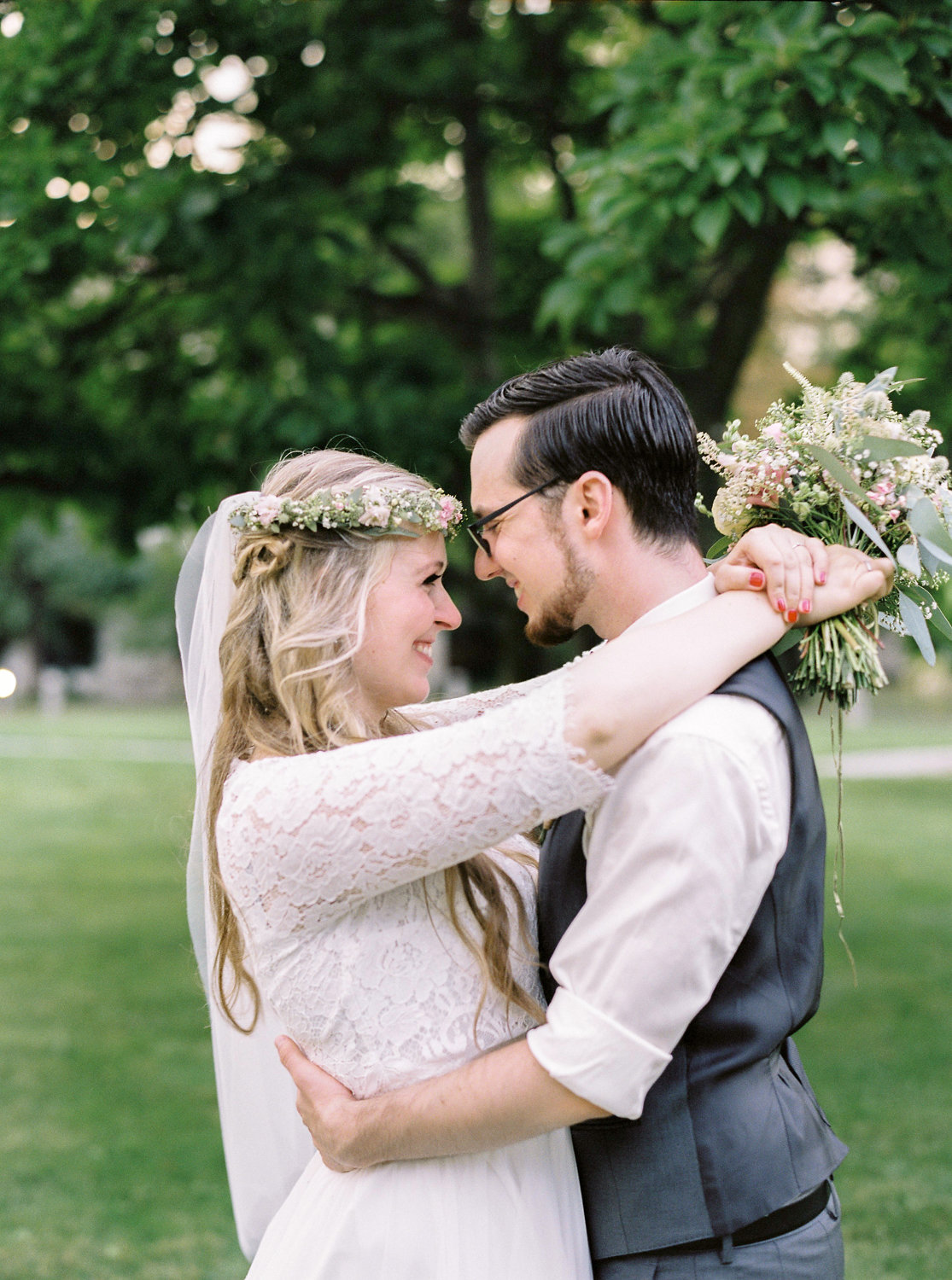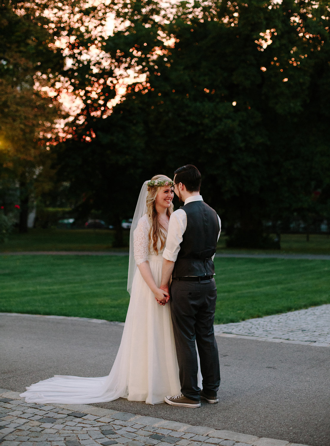 „Das erste Foto von uns beiden entstand in London bei einem Schulausflug in Greenwich. Damals (es war 2006) waren wir zwar noch nicht zusammen, aber schon beste Freunde. Genau zehn Jahre später machte mir Theo an jener Stelle einen Heiratsantrag, an der damals das Foto entstanden war. Der Ring befand sich in einem Snitch (der goldene Ball aus Harry Potter, den man beim Quidditch fangen muss, um das Spiel zu gewinnen). Wir sind beide riesige Harry-Potter-Fans. Bei unserer Hochzeit haben wir die eine oder andere Harry -Potter-Referenz eingebaut (Manschettenknöpfe, “something blue” im Kleid, Strumpfband).”
